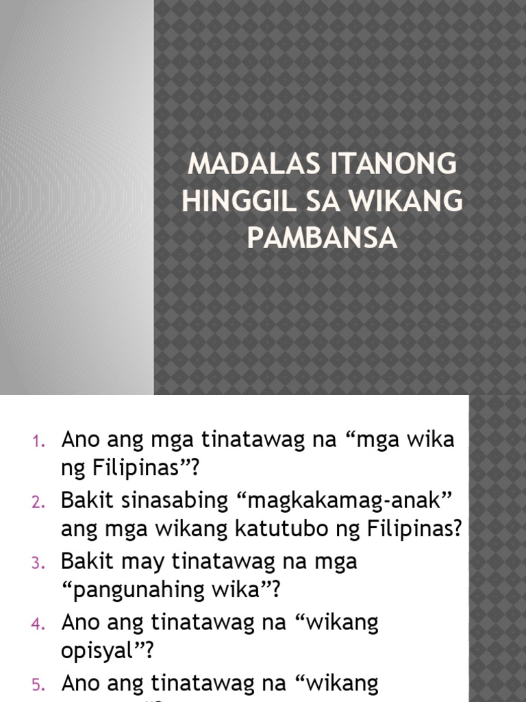 Madalas Itanong Hinggil Sa Wikang Pambansa Pdf